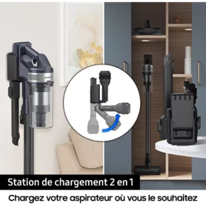 Le SAMSUNG Jet 85 Pet VS20C85G2TW incarne la nouvelle génération d’aspirateurs balais conçus pour répondre aux besoins réels des foyers modernes, en particulier ceux où les animaux occupent une place importante. Pensé pour combiner puissance, maniabilité et hygiène, il facilite grandement le nettoyage des poils, poussières et résidus du quotidien.