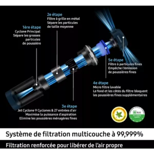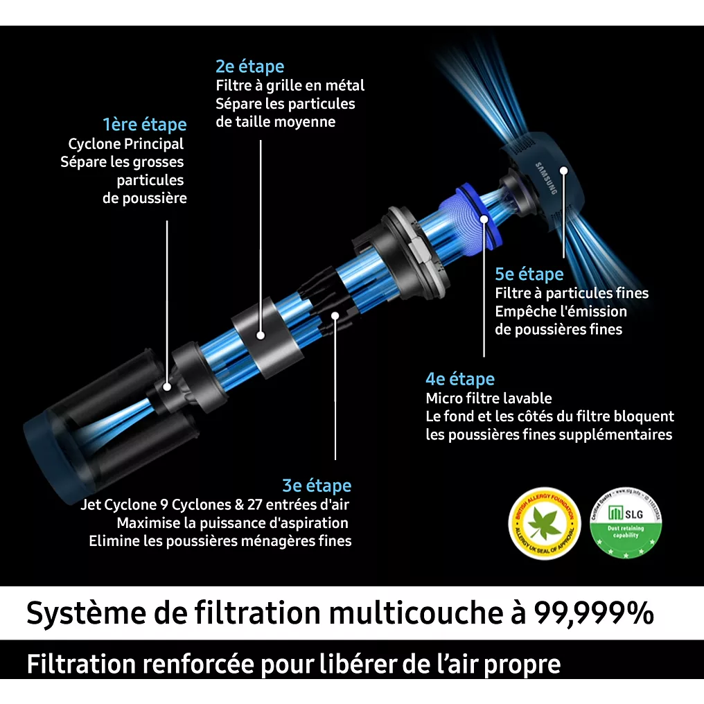 | Filtration | 5 étapes (99,99% des allergènes) |