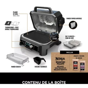 Le Barbecue électrique NINJA OG901EU Woodfire Pro Connect représente une nouvelle génération d’appareils dédiés à la cuisine en plein air. Conçu pour offrir une puissance de cuisson exceptionnelle, des saveurs authentiques de bois fumé et un contrôle intelligent via connexion mobile, ce barbecue électrique incarne l’innovation au service du plaisir culinaire. Avec son design robuste, ses fonctionnalités polyvalentes et sa précision technologique, il s’adresse aussi bien aux amateurs de barbecue qu’aux passionnés exigeants en quête de performances professionnelles.