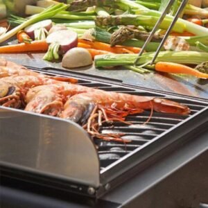 Le design intègre également des éléments pratiques comme des indicateurs de chaleur pour chaque zone et une finition soignée, garantissant un appareil à la fois performant et esthétiquement agréable dans n’importe quel environnement de cuisine ou espace extérieur.