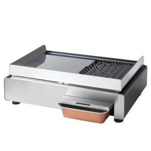 Le Barbecue Plancha électrique Duo K de Krampouz est un appareil polyvalent, performant et pratique, conçu pour offrir une expérience culinaire complète. Sa double zone de cuisson indépendante, sa puissance électrique et son contrôle précis permettent de préparer des plats savoureux et homogènes pour toute la famille ou un groupe d’amis.