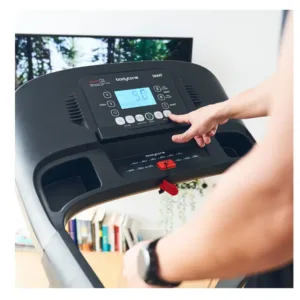 - Sa console est dotée d’un large panneau de boutons permettant de démarrer ou d’arrêter la course, de choisir entre 3 vitesses prédéfinies, d’augmenter ou de diminuer l’inclinaison, la vitesse et de passer d’une chanson à l’autre.