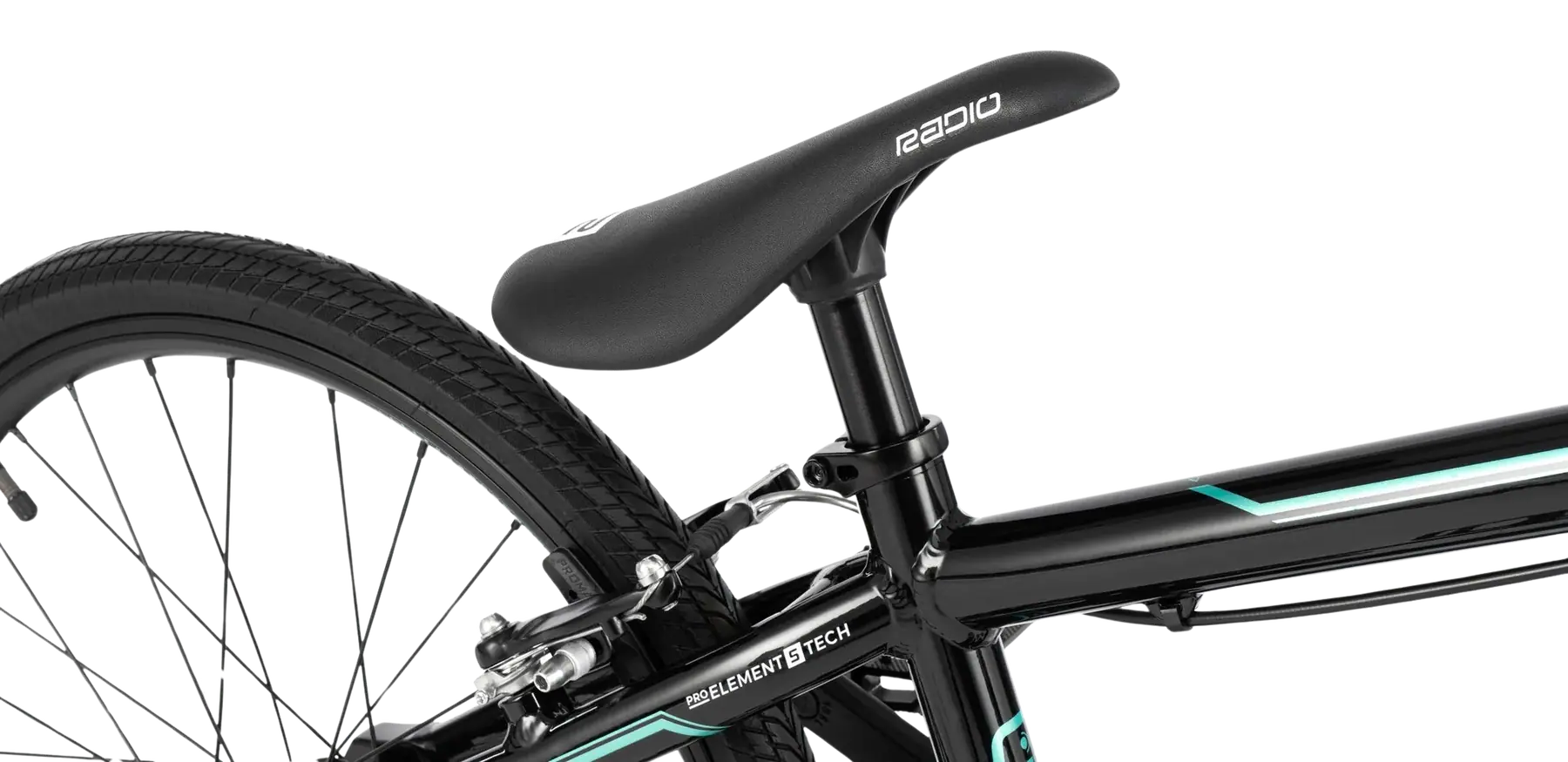 La potence a été rallongée de 50 mm. Ainsi, la posture du pilote gagne en confort et en efficacité. La selle Radio Combo fine s’adapte parfaitement aux besoins du coureur BMX.