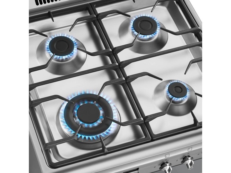 Les finitions premium de la cuisinière témoignent de la qualité SMEG : matériaux robustes, poignées ergonomiques, commandes précises et design épuré. L’appareil se distingue par son équilibre entre esthétique et fonctionnalité, offrant une expérience culinaire agréable et confortable.