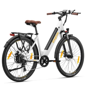 Fabriqué en alliage d’aluminium, le cadre est à la fois léger et robuste. Il assure une excellente stabilité et résiste aux contraintes des routes irrégulières. La posture de conduite est légèrement redressée, réduisant la fatigue au niveau du dos et des épaules. Chaque détail du vélo est pensé pour une expérience confortable sur de longues sorties.