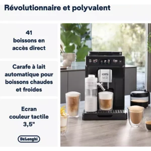 L’un des points forts majeurs de l’Eletta Explore ECAM450.65.G est sa capacité à proposer un large éventail de boissons chaudes et froides. Les utilisateurs peuvent ainsi profiter d’un espresso intense, d’un café long aromatique, d’un americano léger, mais également de boissons lactées comme le cappuccino, le latte macchiato ou le flat white.