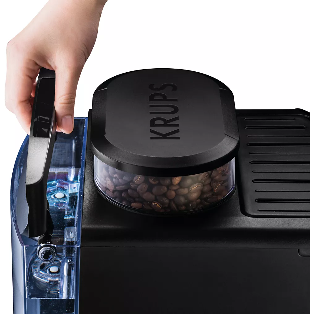 La conception de la machine est pensée pour limiter l’encrassement : le groupe café est fixe, ce qui réduit les manipulations et limite les risques de mauvaise manipulation. KRUPS mise depuis longtemps sur des systèmes internes durables, fiables et faciles à entretenir.