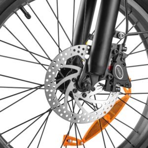Pour un vélo aussi puissant et lourd, le freinage doit être à la hauteur. Le F20 X‑Max dispose de freins hydrauliques sur les deux roues, avec des disques de 160 mm. Cette configuration offre un freinage très réactif, stable et puissant, même sous forte charge ou dans des conditions optimales.