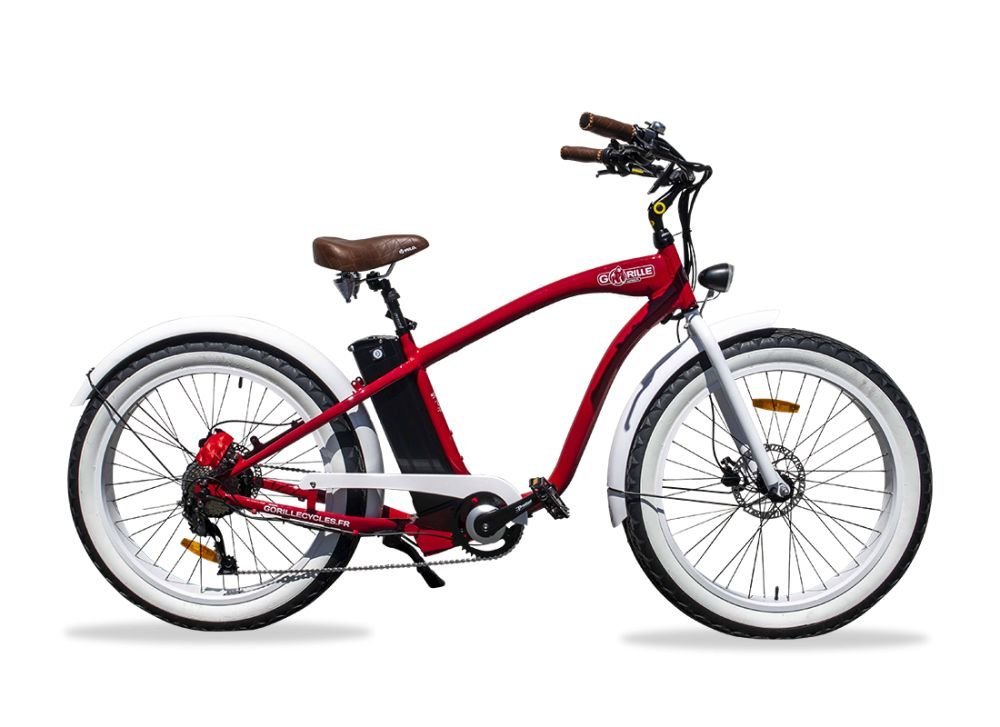 Conçu et assemblé en France, le Gorille Mâle combine le look iconique d’un beach cruiser vintage avec la technologie moderne d’un vélo électrique haut de gamme.