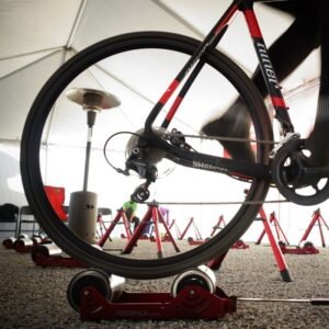 Grâce au design « Fork-Mount », la roue arrière reste sur le vélo, ce qui facilite considérablement le retour du vélo à son état normal. L’Omnium génère une augmentation automatique de la résistance (IPR) grâce à une unité de résistance magnétique brevetée, ce qui permet une sensation de conduite authentique et une conduite dynamique. Les rouleaux ménagent les pneus, ce qui évite de devoir changer les roues avant la course. De plus, les rouleaux de précision avec l’IPR (Internal Progressive Resistance) fonctionnent très silencieusement. Par conséquent, on peut être sûr que les voisins ne seront pas dérangés lors d’une séance d’entraînement en intérieur.