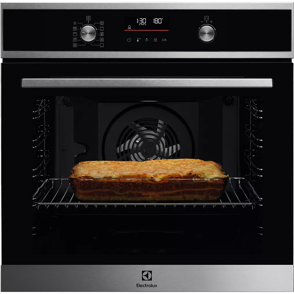 L’ergonomie du Four encastrable ELECTROLUX EOF6P46VX0 SurroundCook facilite son utilisation. Les commandes sont logiques. L’écran affiche temps, température et mode sélectionné. Les réglages s’ajustent en quelques gestes.
