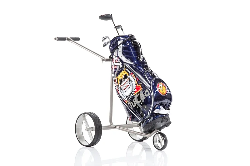Le connecteur magnétique de la batterie, du chargeur et du chariot est particulièrement fonctionnel et garantit une connexion sûre et rapide. Grâce à sa technique de pliage ingénieuse, ce chariot se plie en une fraction de seconde afin d’être rangé dans la voiture ou dans le casier du caddymaster. Le modèle innovateur JuCad Ghost Titan a été récompensé des convoités « German Design Award », « iF Design Award » et « red dot winner ».
