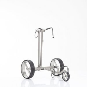 Le chariot électrique JuCad Ghost 2.0 en titane, avec ses jantes design à deux rayons et pourvu de qualités techniques JuCad, captive par un système de contrôle et d‘entraînement innovateur. Le concept d’entraînement haute technologie « brushless » permet de déplacer le chariot de façon silencieuse, et de récupérer l‘énergie dans les descentes.