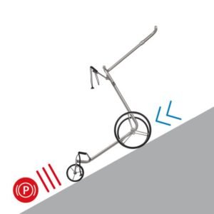 En plus du frein moteur, le double frein de parking électronique, installé dans l’axe, assure une grande stabilité du chariot même sur les terrains escarpés. Le chariot est équipé du pack-technique « 2.0 », incluant une technicité de moteur et de stationnement de dernière génération, un connecteur magnétique ainsi qu’un indicateur de niveau de charge, intégré au chariot. La poignée stable en forme de T permet de guider le chariot avec les deux mains et offre une meilleure maniabilité sur les terrains accidentés.