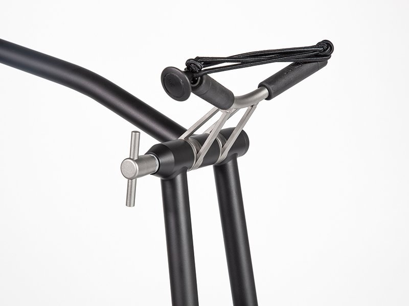 • Fixation simultanée du manche adaptable en hauteur et du support de sac supérieur grâce à sa poignée papillon pratique
