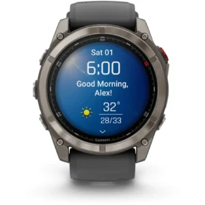 Les boutons physiques, typiques de la série Fenix, sont toujours présents, offrant une utilisation fiable même avec des gants ou sous la pluie. Cependant, Garmin ajoute un contrôle tactile fluide pour naviguer rapidement dans les menus. Le bracelet, interchangeable, existe en silicone, cuir, titane ou nylon tissé, afin de s’adapter aussi bien à une tenue sportive qu’à un usage professionnel ou urbain.
