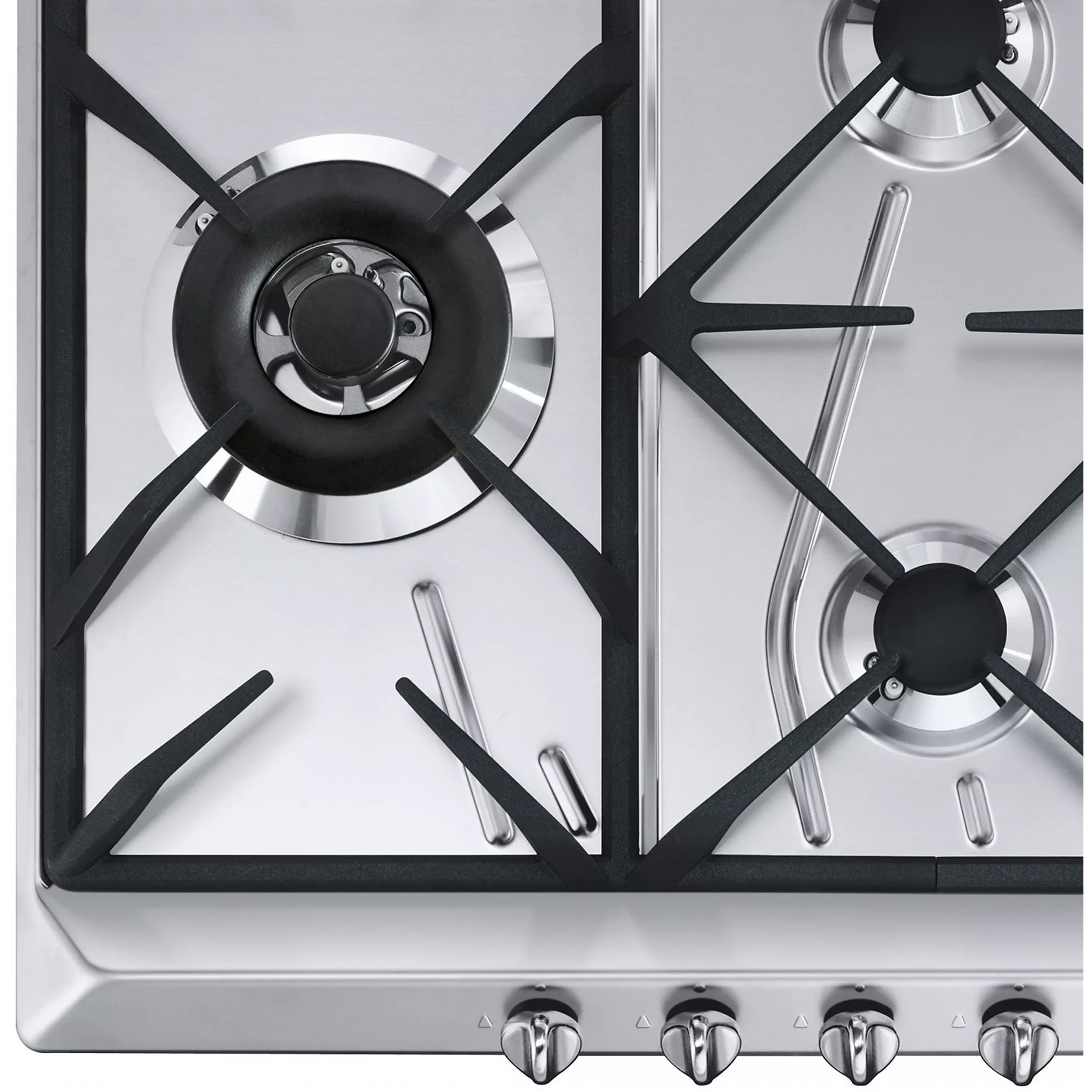 Séparation optimale des brûleurs pour éviter tout contact entre grandes casseroles et ustensiles.