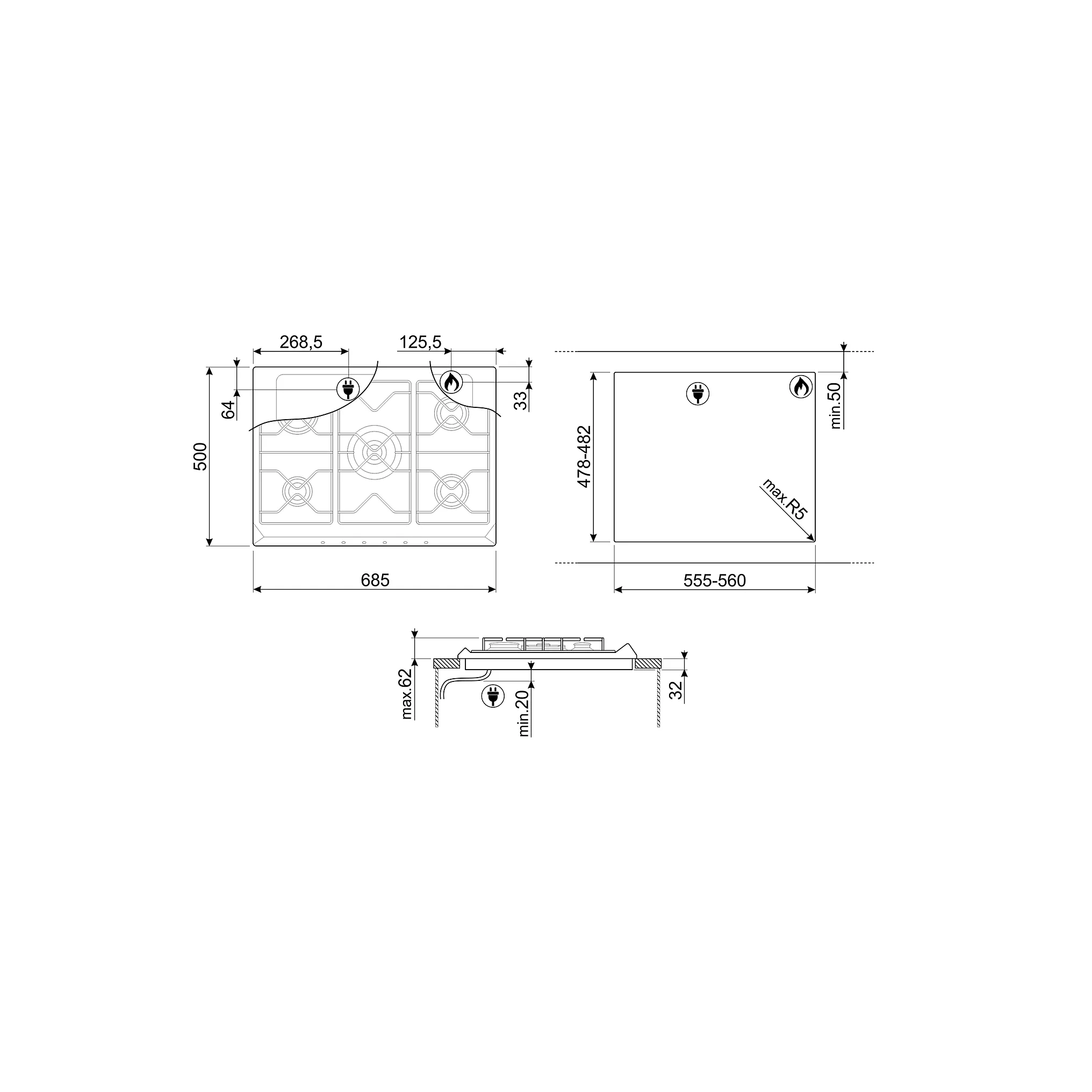 2. Caractéristiques techniques de la plaque gaz SMEG SRV575GH5