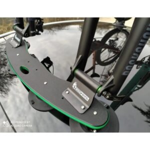 Le TreeFrog Pro 2 Plus est fabriqué à partir de matériaux de haute qualité, notamment du métal renforcé et du caoutchouc, offrant à la fois solidité et légèreté. Sa structure robuste peut supporter jusqu’à 30 kg de poids total, soit 15 kg par vélo, ce qui permet de transporter deux vélos en toute sécurité, y compris des modèles électriques plus lourds.