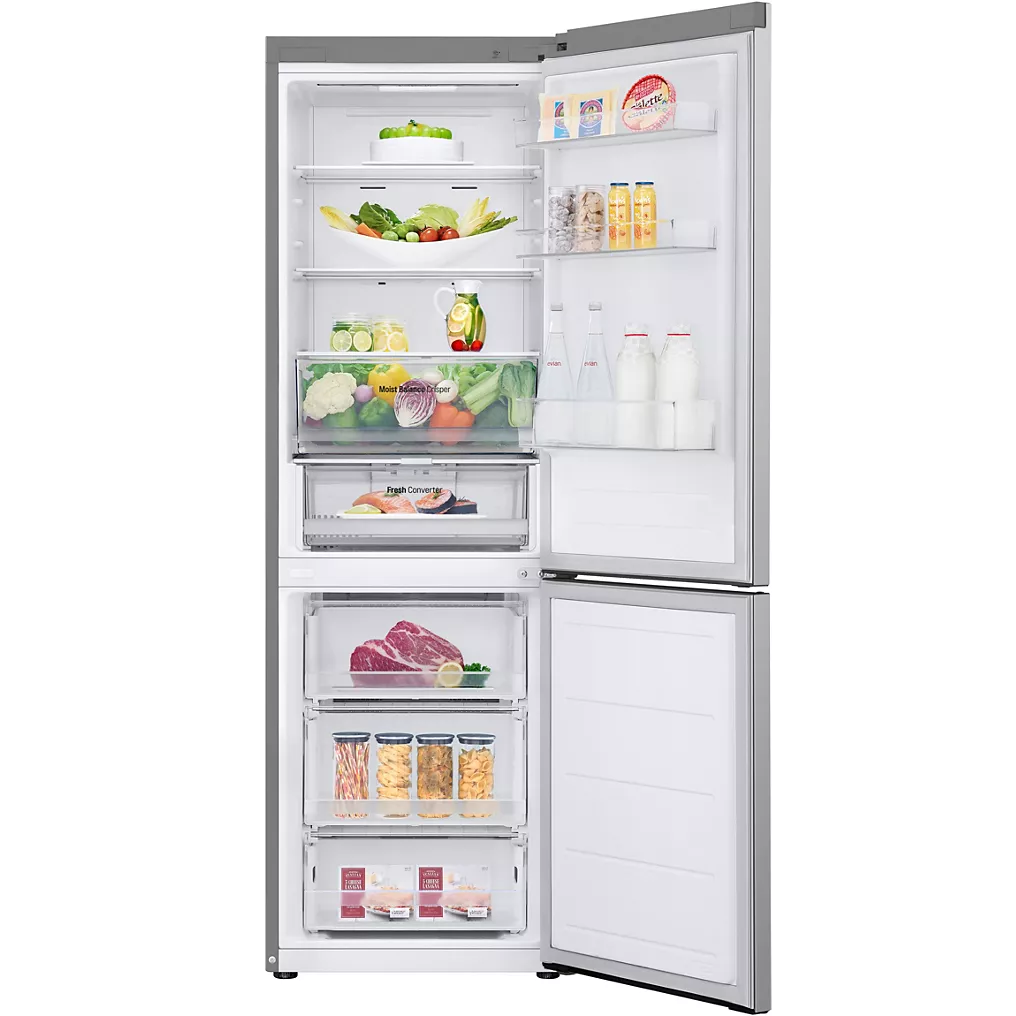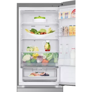 L’intérieur du Réfrigérateur combiné LG GBV3110EPY est conçu pour offrir un maximum de confort et de flexibilité. Chaque compartiment est pensé pour accueillir différents types d’aliments et faciliter leur accès. Le réfrigérateur offre un espace idéal pour les fruits, légumes, produits laitiers, viandes et plats préparés, tandis que le congélateur assure une conservation efficace des surgelés.