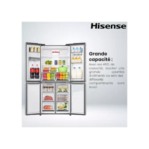 Le réfrigérateur multi‑portes HISENSE RQ5P470SMIE allie grande capacité, technologie de pointe et confort d’utilisation. Il répond aux besoins des familles, des amateurs de cuisine et de tous ceux qui souhaitent stocker et conserver efficacement leurs aliments. Son agencement modulable, son fonctionnement silencieux et son design élégant font de ce modèle un appareil fiable et durable pour la vie quotidienne.