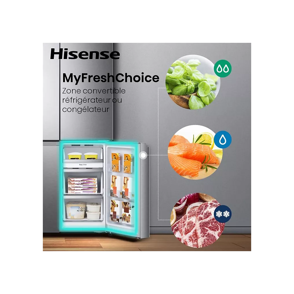 Avec le HISENSE RQ5P470SMIE, vous bénéficiez d’un réfrigérateur moderne, spacieux et performant, capable de répondre à toutes vos exigences de conservation et de praticité.