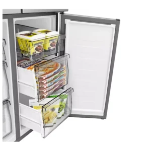 Ce réfrigérateur multi‑portes est idéal pour les familles nombreuses ou les utilisateurs qui aiment avoir une grande réserve de produits frais, surgelés et boissons à portée de main. Il combine un réfrigérateur spacieux avec un congélateur bien organisé, permettant de conserver tous les types d’aliments tout en optimisant l’espace.