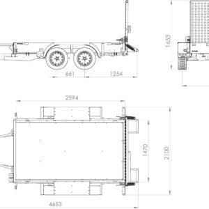 La caisse de chargement aux dimensions de 2594×1470 mm et d’un PTC de 2700 kg permet de charger une grande quantité de marchandises, et des poignées solides assurent leur fixation en toute sécurité. La construction du châssis porteur en acier de construction à résistance accrue et la surface de transport en contreplaqué étanche d’une épaisseur de 15 mm garantissent la fiabilité et la durabilité de la remorque.