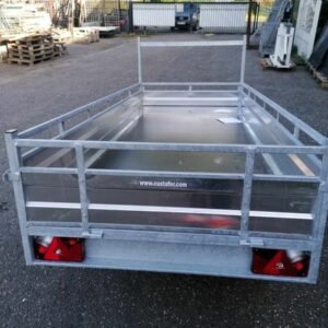 - Les autres parties (les garde-boue, l’attelage, le verrou,…) sont galvanisées à l’aide de l’électrolyse. Les supports horizontaux des essieux des remorques ne sont pas galvanisés à chaud (les rebords sont traités antirouille).