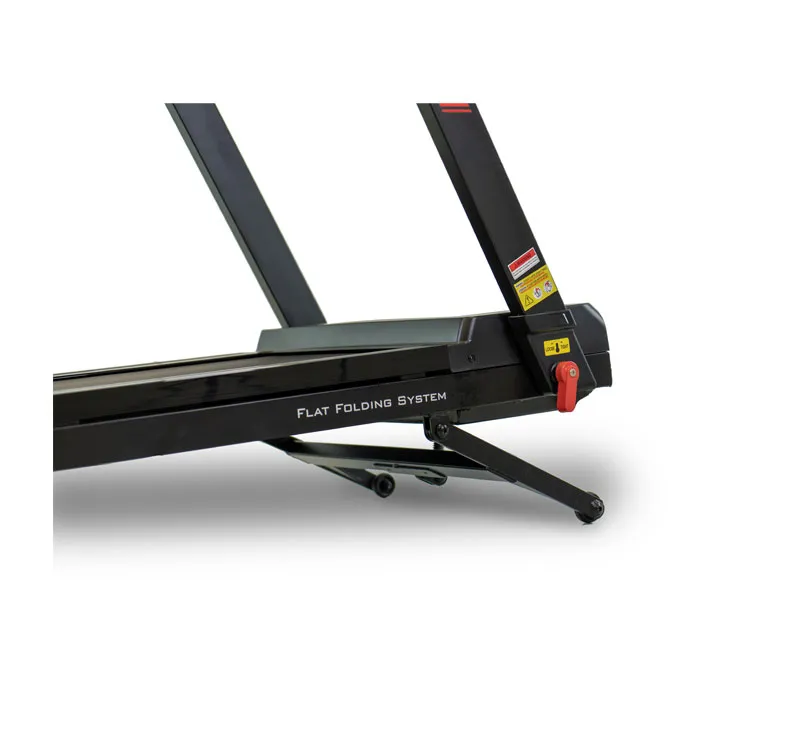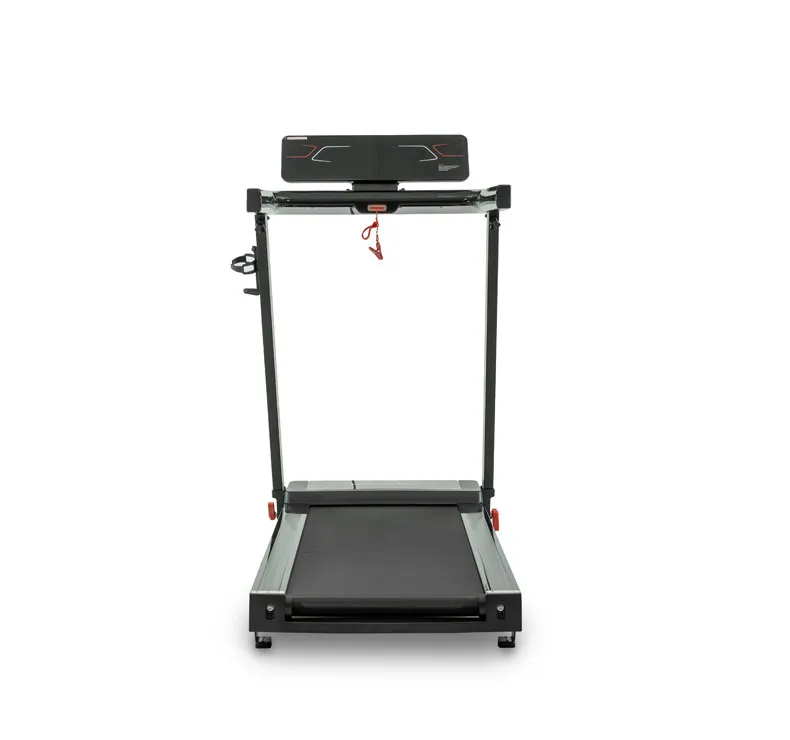 L’incorporation du système Plug and Run rend le tapis de course très pratique car il ne nécessite aucun assemblage, aucune vis ni aucune connexion électrique. Grâce à ce système de montage, le tapis de course peut être installé immédiatement.Le tapis de course est également équipé de roulettes à l’avant, ce qui permet de le ranger facilement. Il vous permet de transporter le tapis de course sans avoir à supporter un poids important.