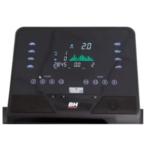 Le tapis de course BH Vanquish II est équipé d’un puissant moteur avec un silence maximum continu/crête de 2,5CV/4CV qui permet une vitesse allant jusqu’à 22Km/h et une inclinaison électrique de 15%.