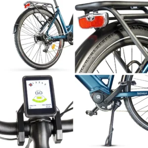 Grâce à ces équipements, le VAE de ville UrbanBiker Sidney PLUS Moteur Central devient un vélo complet et pratique, prêt à répondre aux besoins quotidiens des cyclistes urbains.