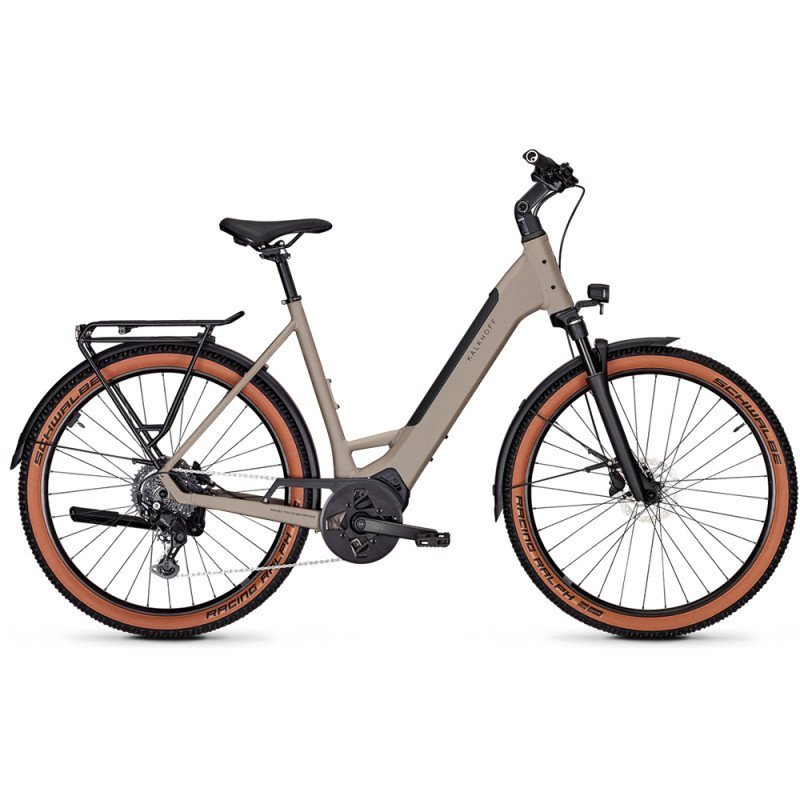Le vélo de randonnée électrique Kalkhoff Entice L Advance accueille tout type de pratiquant(e), de l’urbain pressé au baroudeur sportif. Le vélo s’adapte à son propriétaire. La potence est ajustable. Elle permet de régler la hauteur du guidon. Le vélo a des pneus VTT Schwalbe Racing Ralph, parfaits pour l’aventure. Ils sont larges et ont des crampons latéraux. Cela aide à bien tenir dans les virages sur les chemins de randonnée.