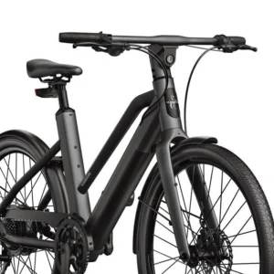 Les lignes du cadre sont épurées, harmonieuses et pensées pour offrir un confort optimal. L’esthétique du vélo se distingue par une finition soignée, avec une intégration discrète des câbles et de la batterie, renforçant la sensation de modernité.