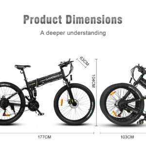 Le design pliable est très pratique : le vélo peut se replier en trois étapes, et sa taille repliée est d’environ 1,02 m × 0,40 m × 0,96 m selon certains vendeurs.