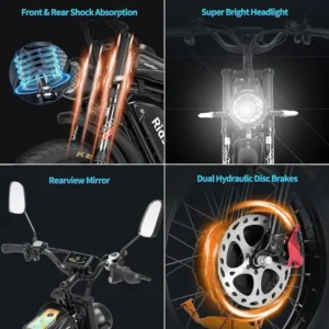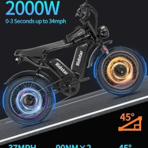 Le Vélo électrique Ridstar Q20Pro 2000W gros pneu est un vélo complet, puissant, polyvalent et confortable. Il combine moteur performant, pneus larges, autonomie élevée et confort optimal, faisant de lui un choix idéal pour les cyclistes exigeants, les amateurs d’aventure et les utilisateurs urbains.