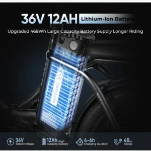 Le SAMEBIKE CY20 est équipé d’une batterie lithium de qualité. Les batteries modernes offrent des avantages remarquables :
