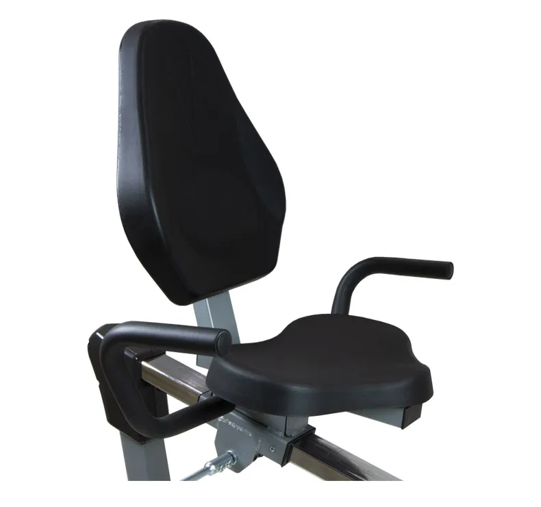 Vélo semi-allongé avec moniteur LCD programmable, cadre ouvert et entièrement réglable pour procurer un haut niveau de confort pendant l’exercice à l’utilisateur.