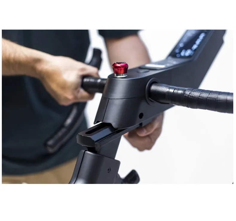 Le Q facteur est la distance entre les axes des manivelles du vélo. C’est l’un des facteurs déterminants lorsqu’il s’agit de pouvoir reproduire une position similaire à celle du vélo de route, et l’un des points faibles des appareils d’entraînement à domicile. Cela a été précisément l’un des chevaux de bataille de l’équipe de développement d’Exercycle, qui a réussi à obtenir un Q facteur de 152, l’un des plus bas du marché, ce qui permet à la position des jambes lors du pédalage d’être très similaire à celle du vélo de route, tout en permettant à l’utilisateur de générer une force maximale à chaque coup de pédale.