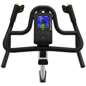 La console incorporée dans ce vélo met en œuvre la technologie bluetooth 4.0 qui permet de se connecter à des appareils android et IOS et d’envoyer les données de la séance d’exercice en temps réel à des applications telles que Zwift, Bkool, Mybodytone, Kinomap, entre autres.