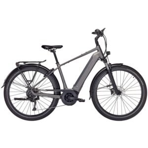 Ce Kalkhoff supporte vos sacoches de randonnée, une caisse ou un panier, sur son porte-bagages MIK. Il utilise des éclairages Herrmans avec un puissant feu avant Nordic MR5 de 40 lux. Les garde-boue, la béquille et l’antivol de cadre font partie de l’équipement de série.