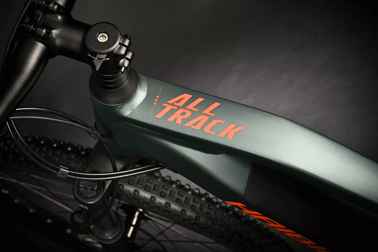 La fourche à suspension SR Suntour au débattement de 120 mm est idéale pour les terrains irréguliers. Quant au moteur Bosch Performance Line Smart System et à la batterie de 500 Wh, ils sont à vos côtés sur les pentes abruptes ou si vous venez à manquer de souffle. En résumé, l’ALLTRACK est un VTT électrique parfaitement à l’aise sur de nombreux terrains, plaisir de rouler inclus.