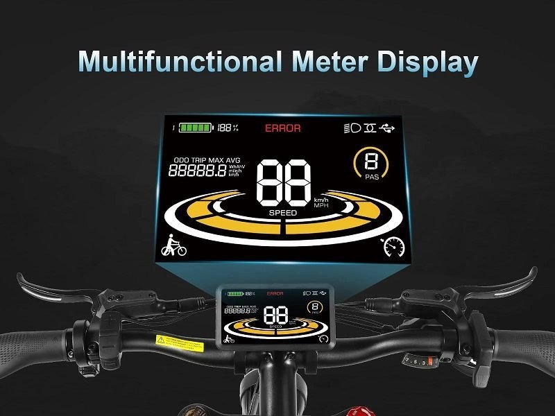 Les pneus larges et la suspension avant du VTT électrique SAMEBIKE RSA08-II garantissent une excellente adhérence sur tous types de terrains. Que vous rouliez sur des chemins accidentés ou sur des routes urbaines, la suspension absorbe les chocs et offre une conduite confortable.