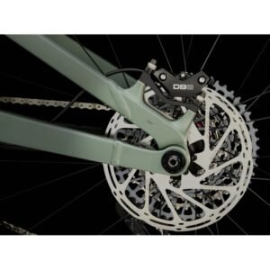 La transmission est assurée par un groupe SRAM GX AXS électronique sans fil, offrant des changements de vitesses précis et rapides. Ce système permet de maintenir une cadence optimale sans interruption, même sur les terrains les plus exigeants.