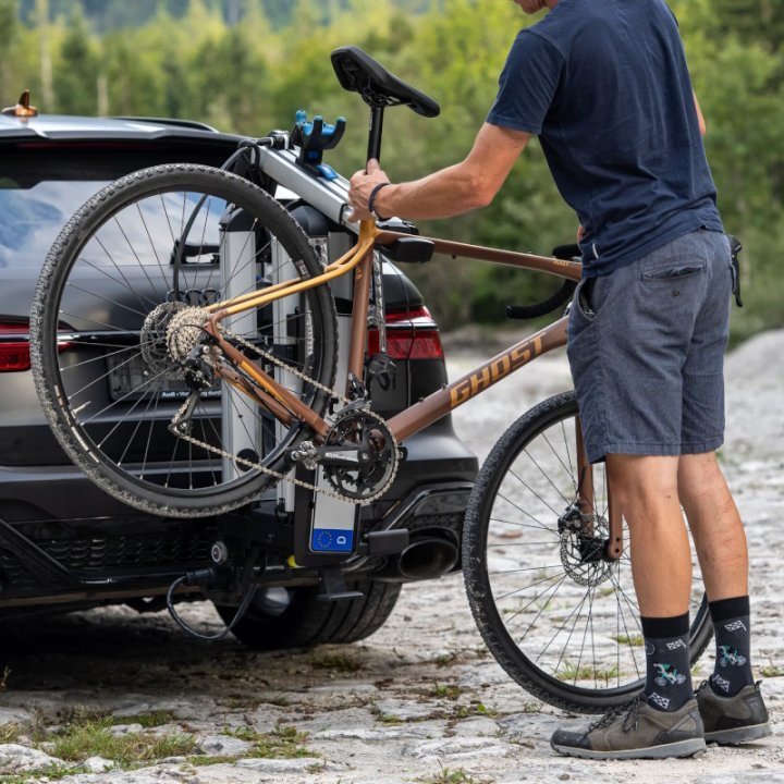 Le porte‑vélos s’installe directement sur la boule d’attelage. Le système de fixation est conçu pour être simple et intuitif, sans nécessiter d’outils compliqués. Une fois monté, le dispositif reste stable et sécurisé.